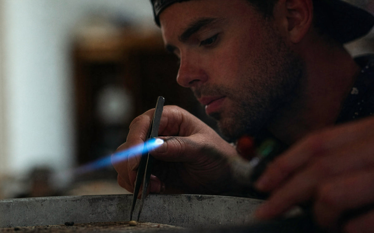 Every piece in our collections is crafted from post-consumer recycled precious metals unless otherwise specified. For made-to-order pieces and bespoke commissions, we can also create designs in alternative alloys upon request.